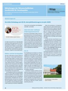 Nun ist seit Januar 2019 die Allgemeine Homöopathische Zeitung (AHZ) das neue Forum für die Mitteilungen des Vorstands der Wissenschaftlichen Gesellschaft für Homöopathie (WissHom).