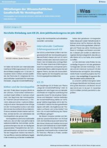 Unter den „Mitteilungen des Vorstands“ finden Sie Informationen zur aktualisierten Website, zum „Glossar der Repertoriumsbegriffe“, über die Ergebnisse einer WissHom-Umfrage sowie zum 12. Internationalen Coethener Erfahrungsaustausch.